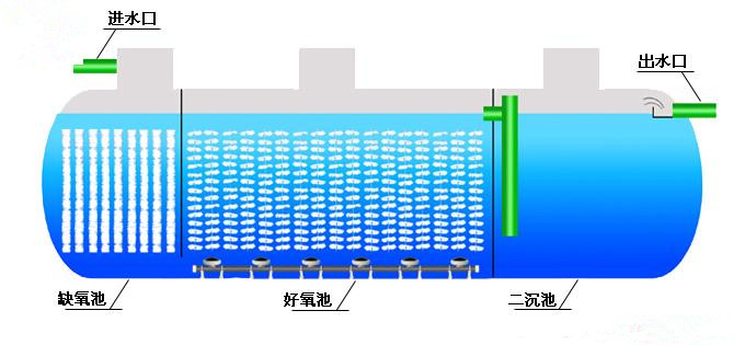 一體化污水處理設(shè)備是將一沉池、I、II級接觸氧化池、二沉池、污泥池集中一體的設(shè)備,并在I、II級接觸氧化池中進(jìn)行鼓風(fēng)曝氣,使接觸氧化法和活性污泥法有效的結(jié)合起來,節(jié)省了找人設(shè)計(jì)污水處理工藝和做基礎(chǔ)建設(shè)的繁瑣。